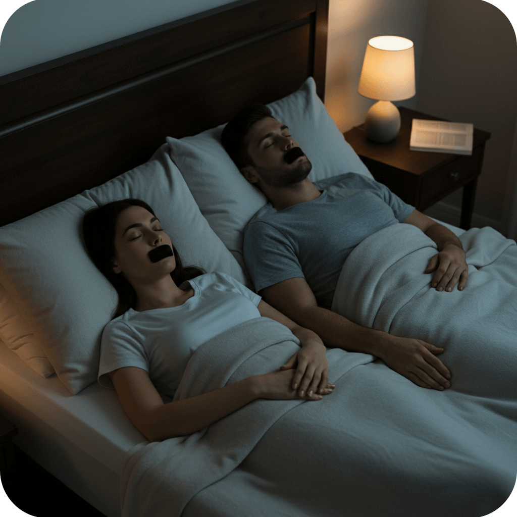 Most adults can use mouth tape safely. If you have sensitive skin, do a quick patch test first. Avoid use if you can’t comfortably breathe through your nose or have a medical condition affecting airflow. Not recommended for children.
